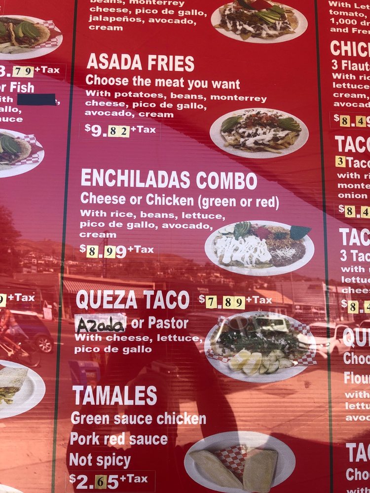 12" handmade corn tortilla stuffed with choice of meat and cheese topped with lettuce, mexican cheese, sour cream and avocado. Choose a meat: Chicken, Steak, Also pastor, Chile relleno, Carnitas. Choose a sauce: Red Sauce (spicy), Green Sauce (mild)